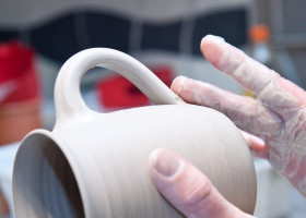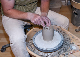 „Bei Ihrem Besuch in der KeramikWerkstatt können Sie mir auch gerne bei der Arbeit auf der Töpferscheibe über die Schulter schauen.“