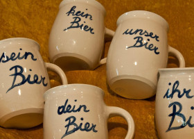 Oben ist in Bildern den Herstellungsvorgang eines Bierkrugs dokumentiert.