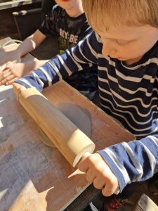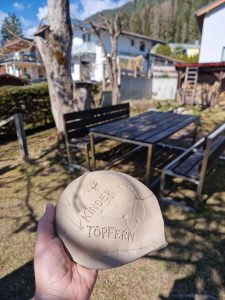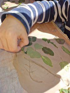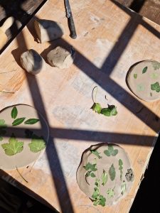 Wir wandern gemeinsam durch den Wald und suchen unterschiedliche Blätter. Danach werden wir in meinem Garten Platten aus Ton ausrollen und die Blätter abdrucken. Daraus machen wir dann kleine Schalen oder Türschilder. Eure Werke brenne ich in unserer Werkstatt und benachrichtige euch sobald sie abgeholt werden können.